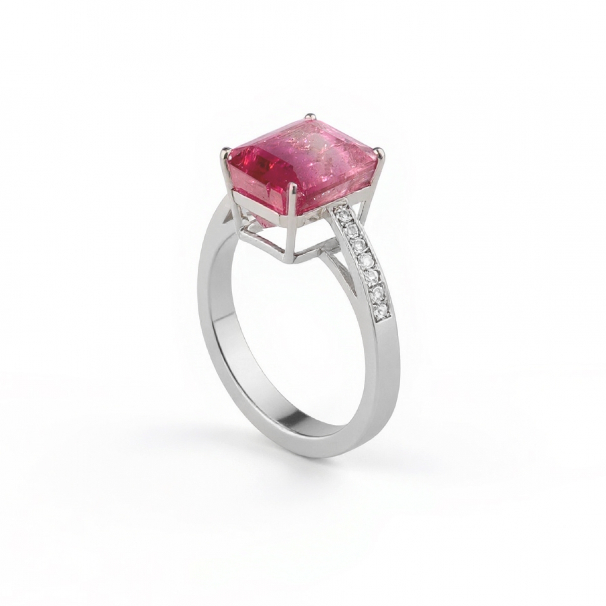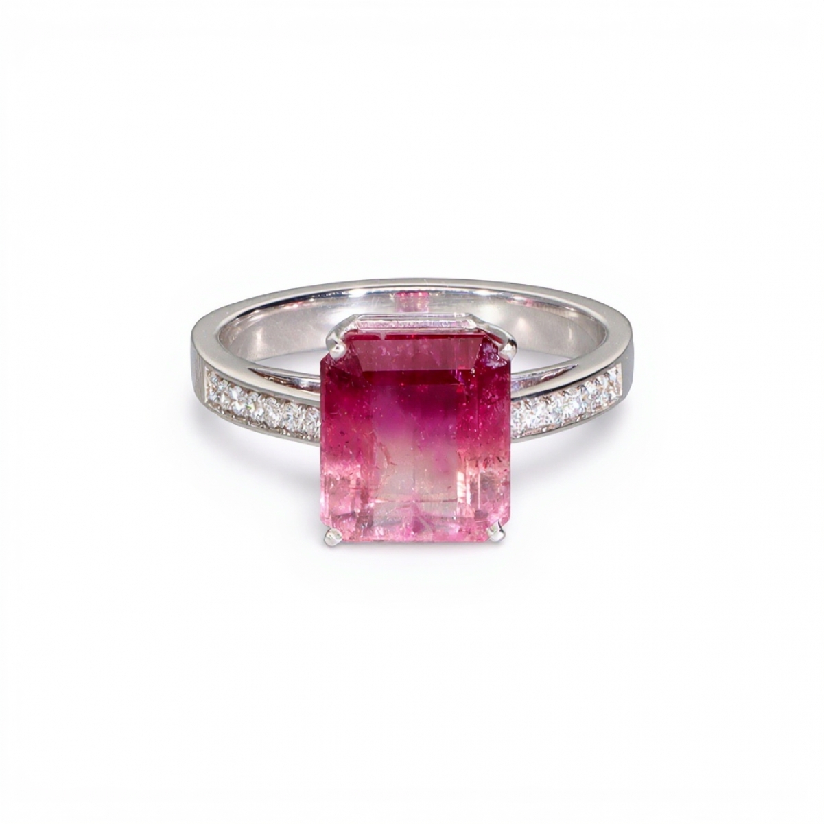 Anello in Oro bianco con Tormalina bicolore e Diamanti