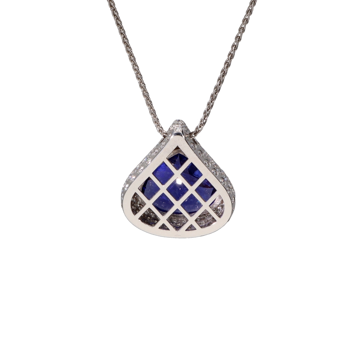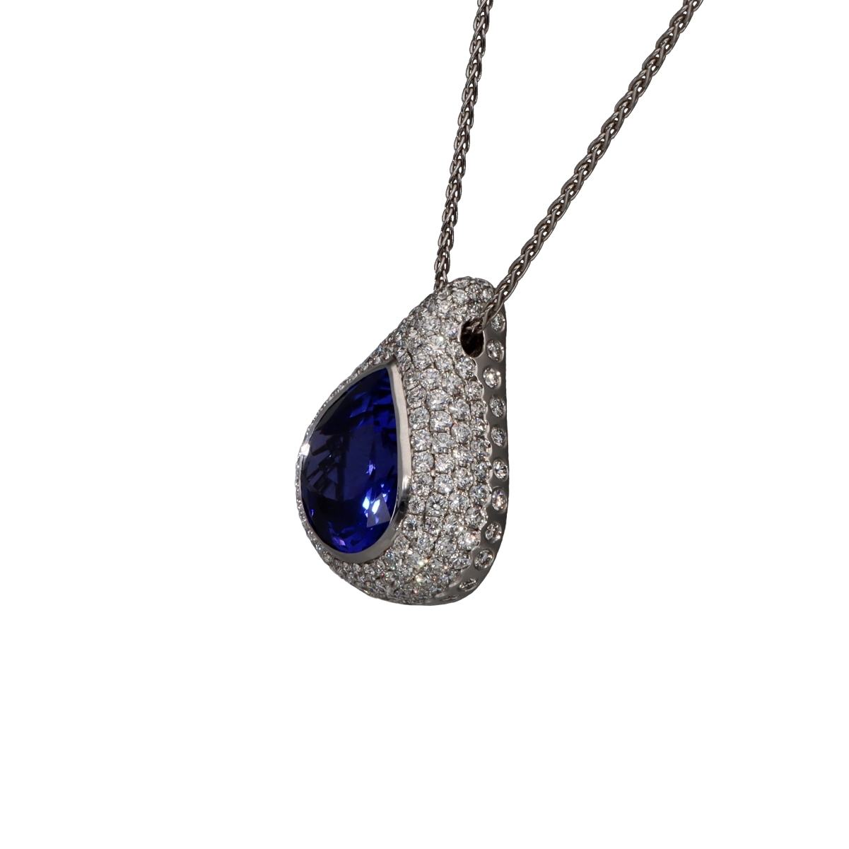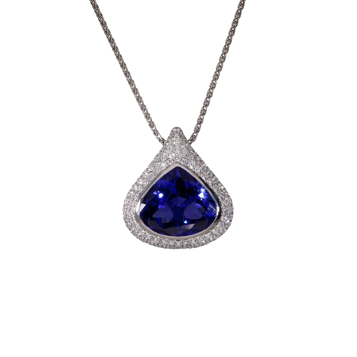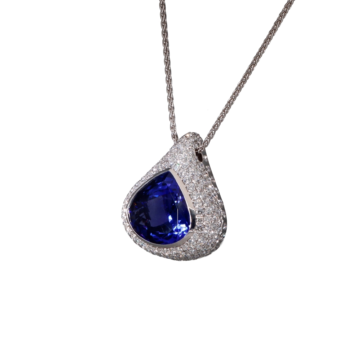 Pendente con catena in Oro bianco, Diamanti e Tanzanite